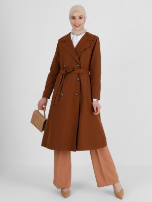 Refka Camel Pamuk Kumaşlı Kuşaklı Trençkot