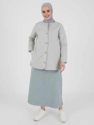 Refka Gri Doğal Kumaşlı Kapitone Detaylı Ceket