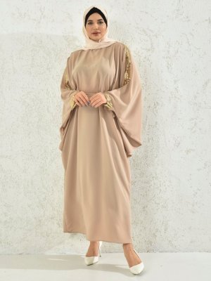 Filizzade Camel Omuz Ve Kol Ağzı Pul Payet Detaylı Ferace