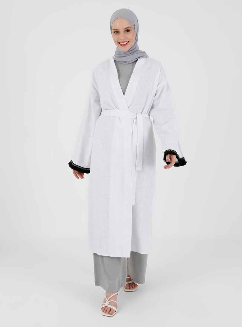 Refka Off White/siyah Şerit Doğal Kumaşlı Detaylı Ferace