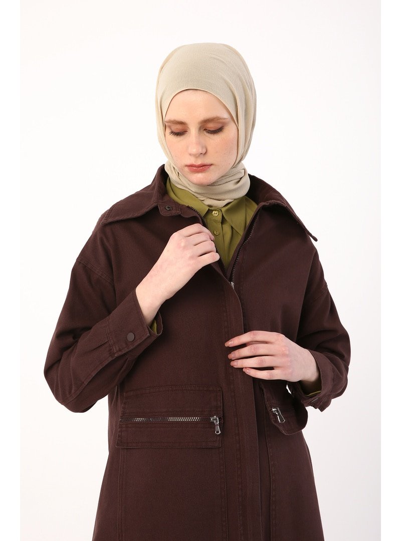 Allday Kahve Pamuk Fermuar Detaylı Spor Ferace