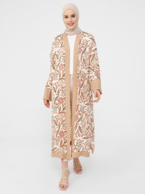 Refka Vanilya Tropik Desenli Garnili Ferace