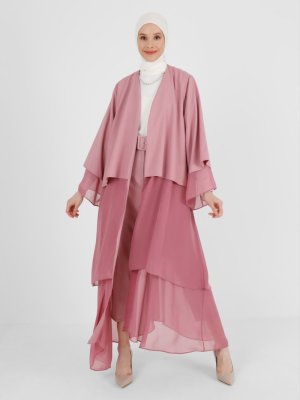 Refka Gül Kurusu Şifon Detaylı Ve Pelerinli Abiye Ferace