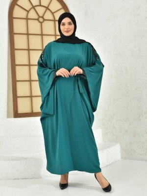 Filizzade Yeşil Omuz Ve Kol Ağzı Pul Payet Detaylı Ferace