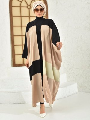 Filizzade Çok Parça Garnili Ferace Camel Siyah