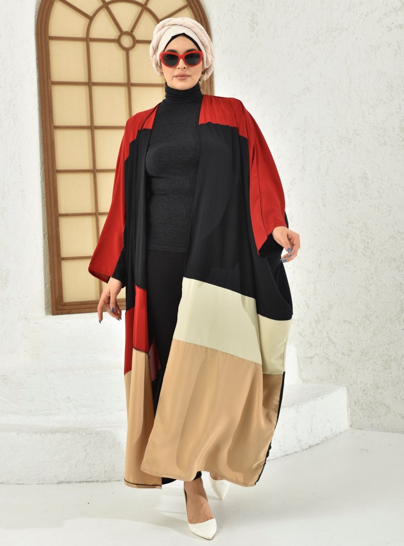 Filizzade Çok Parça Garnili Ferace Siyah Bordo