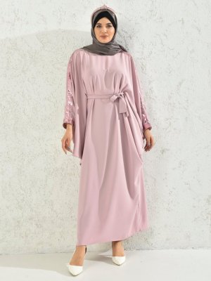 Filizzade Pudra Omuz Ve Kol Ağzı Pul Payet Detaylı Ferace
