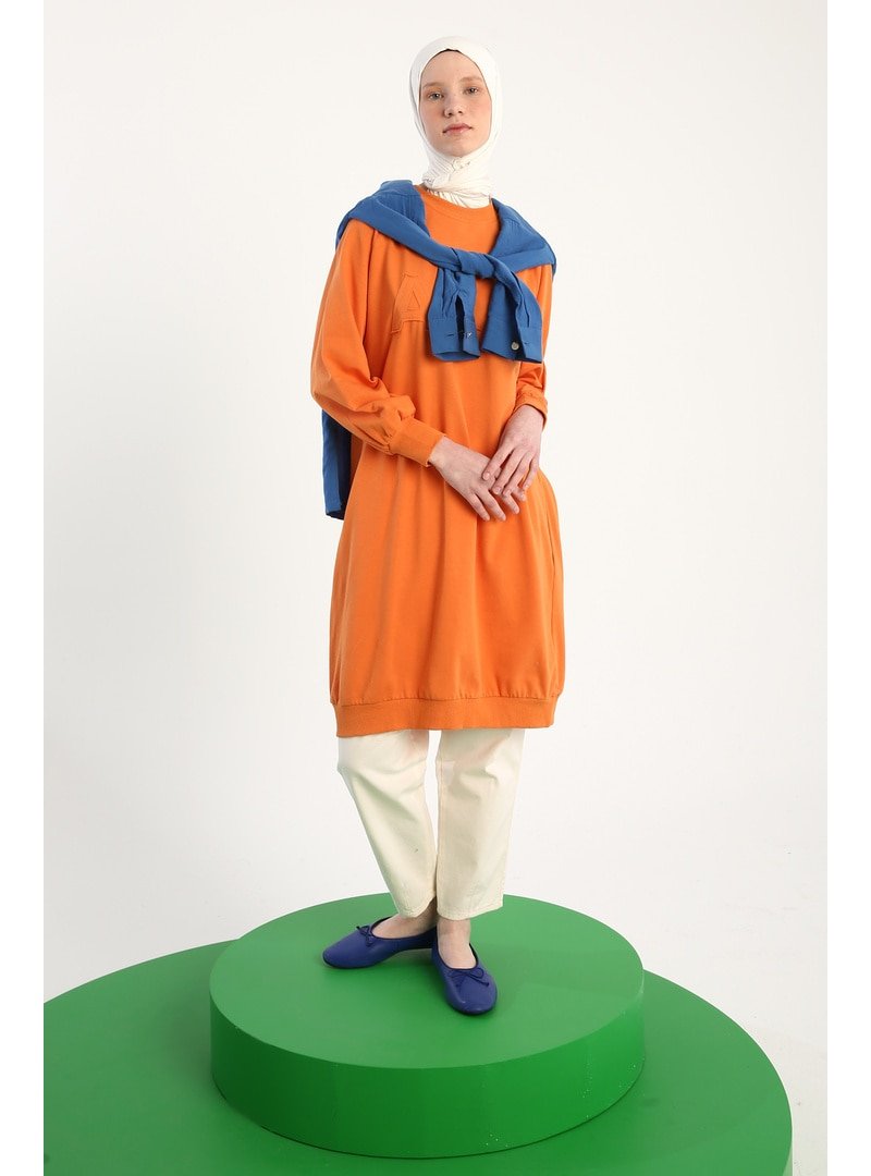 Allday Turuncu Ribanalı All Nakışlı Sweat Tunik
