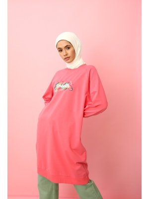 Allday Pembe Renkli Nakışlı Reglan Kol Sweat Tunik