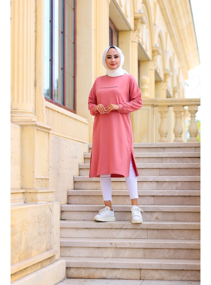 Moylin Baskılı Uzun Sweatshırt Gül