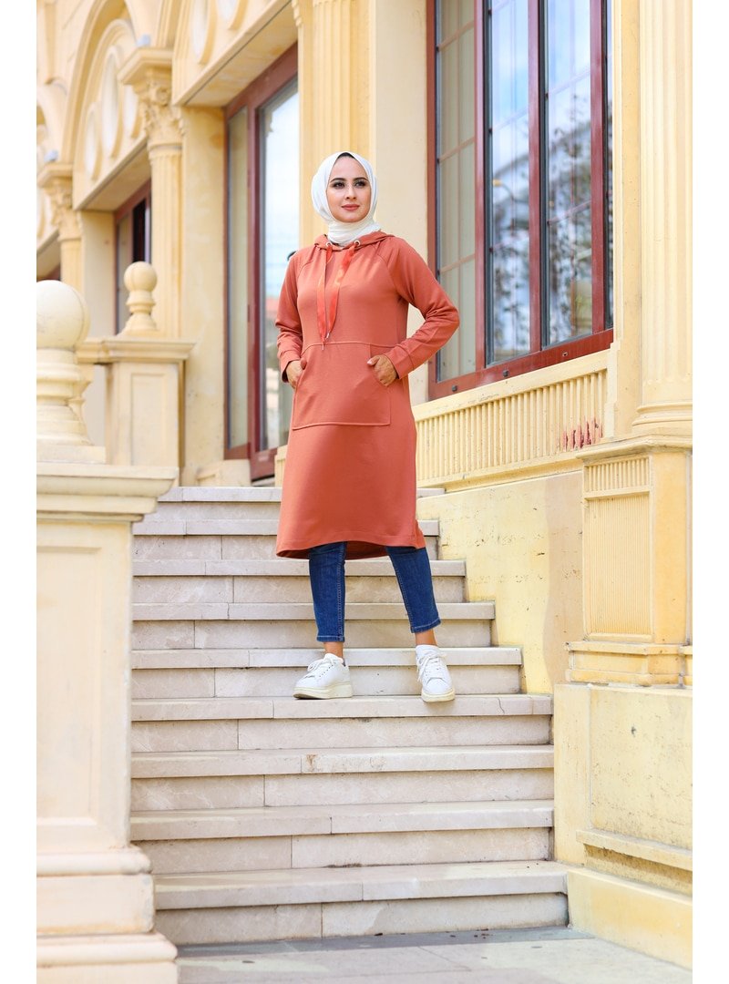 Moylin Reglan Kol Uzun Tunik Turuncu