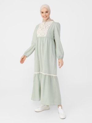 Benin Doğal Kumaşlı Dantelli Elbise Kekik