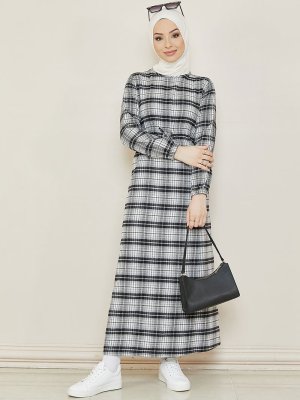 Tofisa Gri Ekoseli Elbise