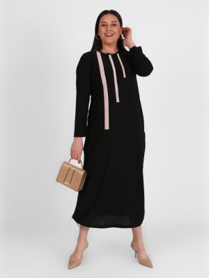 Alia Siyah Büyük Beden Şerit Detaylı Elbise