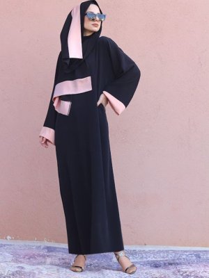Melek Aydın Takım Ferace Elbise Siyah Pembe