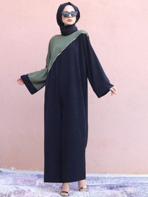 Melek Aydın İki Renk Ferace Elbise Siyah Haki