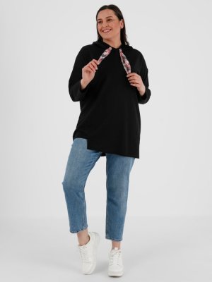 Alia Siyah Büyük Beden Kapüşonlu Tunik