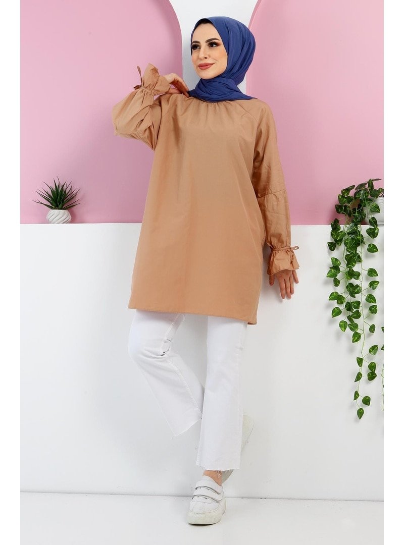 Tesettür Dünyası Camel Kolu Volan Detaylı Tunik