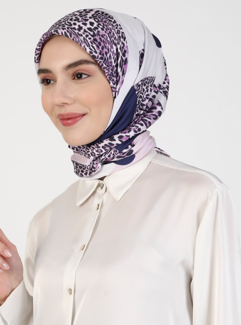 Balse Eşarp Pudra Leopar Desenli Twill Eşarp Toz