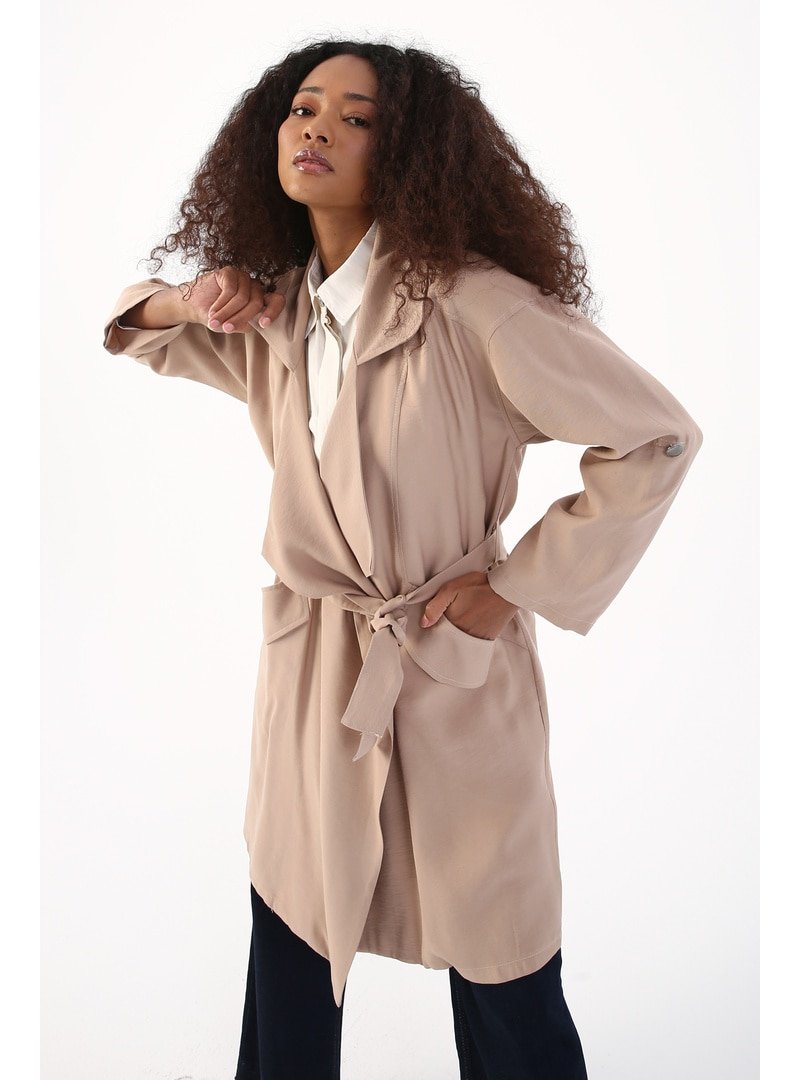 Allday Kuşaklı Salaş Yaka Rahat Kalıp Kap