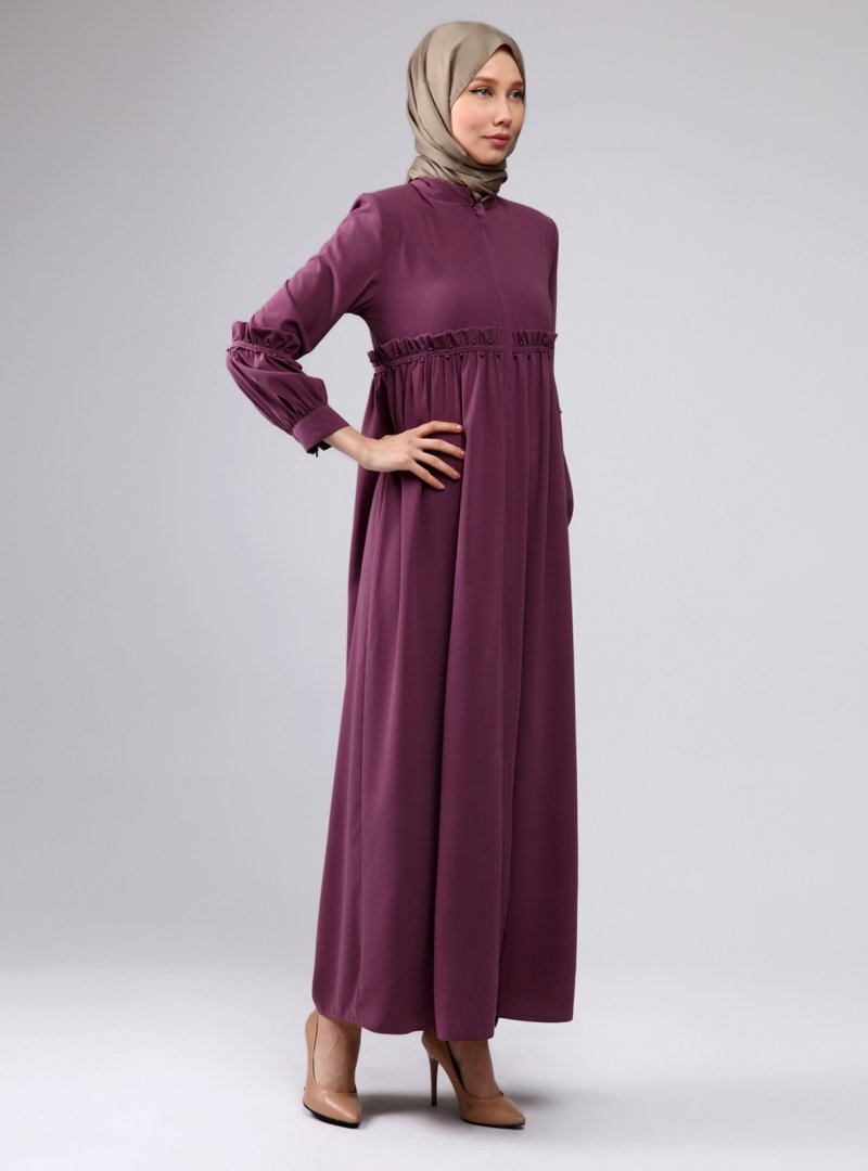 Jamila Gül İncili Fermuarlı Ferace Koyu