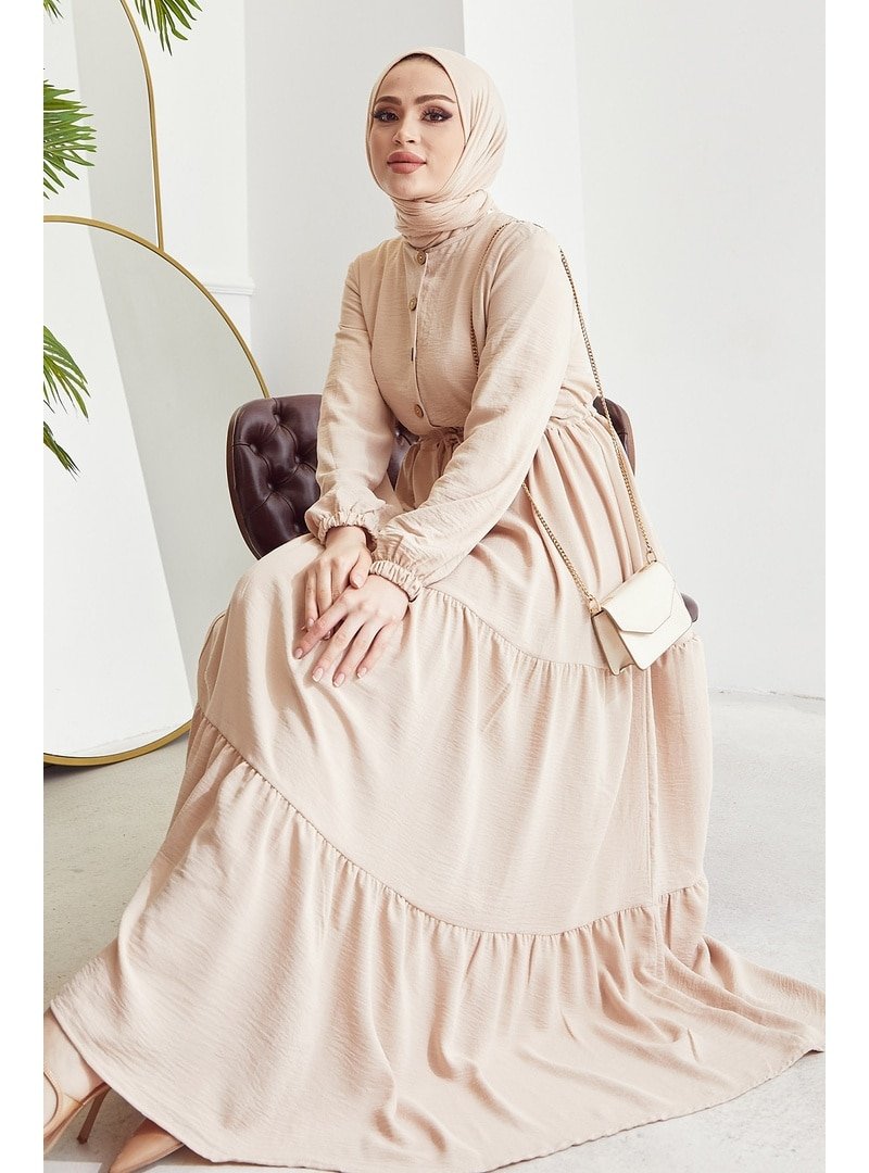 In Style Bej Pamela Düğmeli Ayrobin Elbise