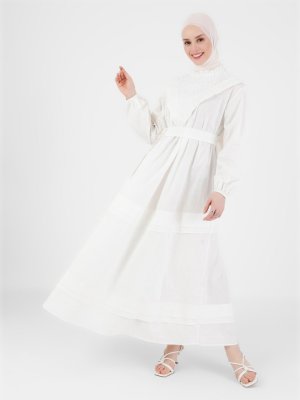 Refka Off White Brode Ve Aller Detaylı Elbise