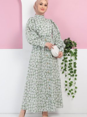 MISSVALLE Mint Düğme Detaylı Çiçekli Elbise