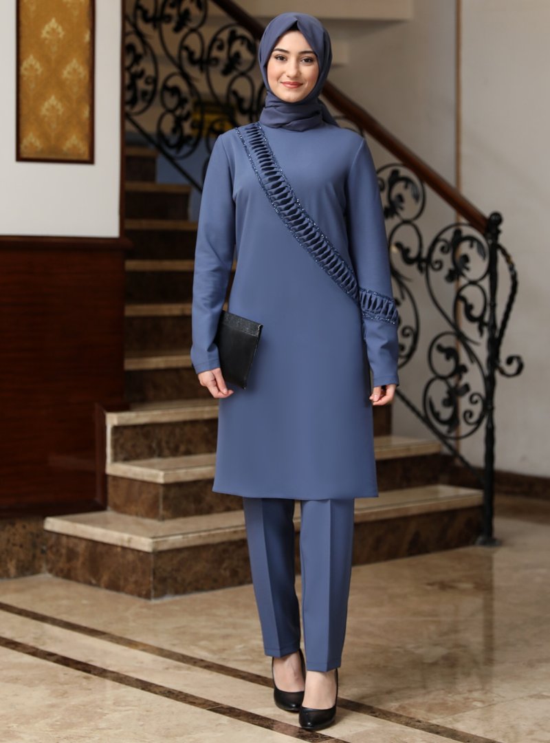 Rabeysa İndigo Orkide Tunik & Pantolon İkili Takım