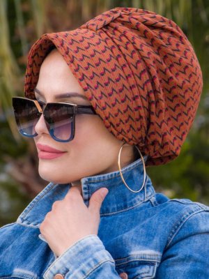 AİŞE TESETTÜR Karamel Zigzag Fularsız Şapka Bone