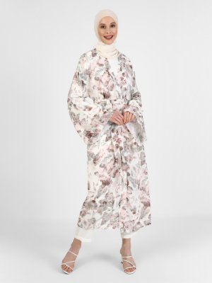 Refka Off White Desenli İspanyol Kol Viskon Şifon Ferace