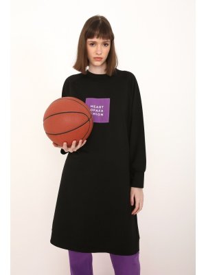Allday Siyah Baskılı Aplikeli Sweat Tunik