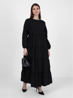Alia Siyah Büyük Beden Pamuk Karışımlı Kol Uçları Lastikli Salaş Elbise