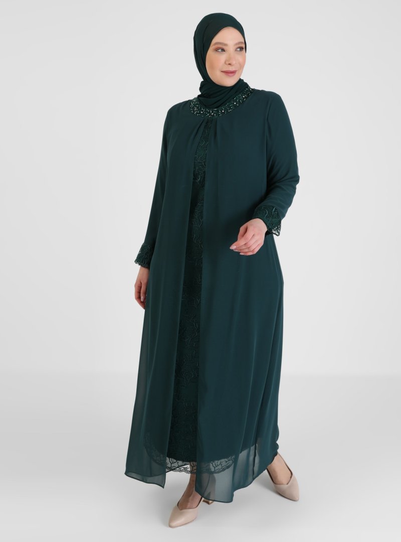 Atay Gökmen Yeşil Boncuk Ve Taş Detaylı Abiye Elbise