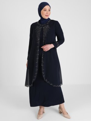 Atay Gökmen Lacivert Zımba Detaylı Abiye Elbise