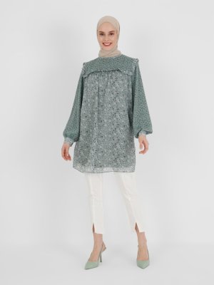 Refka Çağla Çift Desenli Fırfırlı Şifon Tunik