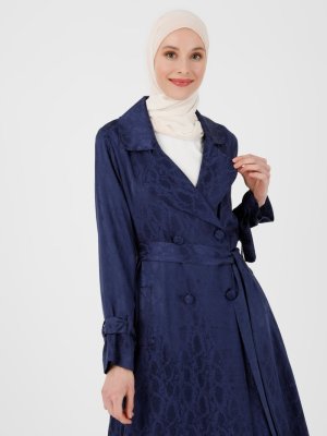 Refka Lacivert Jakarlı Saten Trençkot