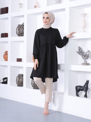 ECESUN Siyah Kol Uçları Lastikli Tunik