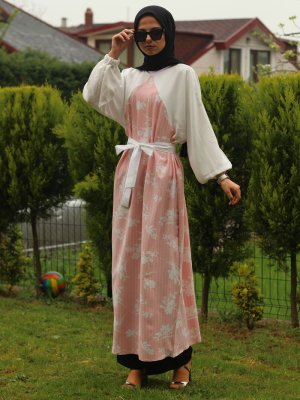 Merve Aydın Elbise Ferace Pembe Beyaz