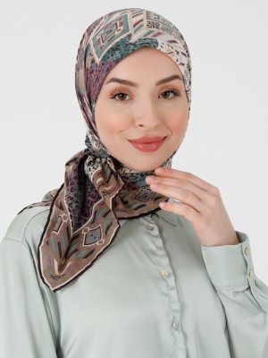 Miray Krep Shade Desen Eşarp Yeşil Vizon