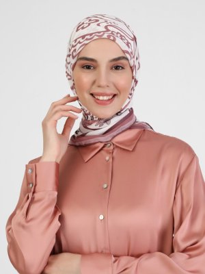 Miray Çiçek Desenli Şifon Eşarp Beyaz Gül Kurusu