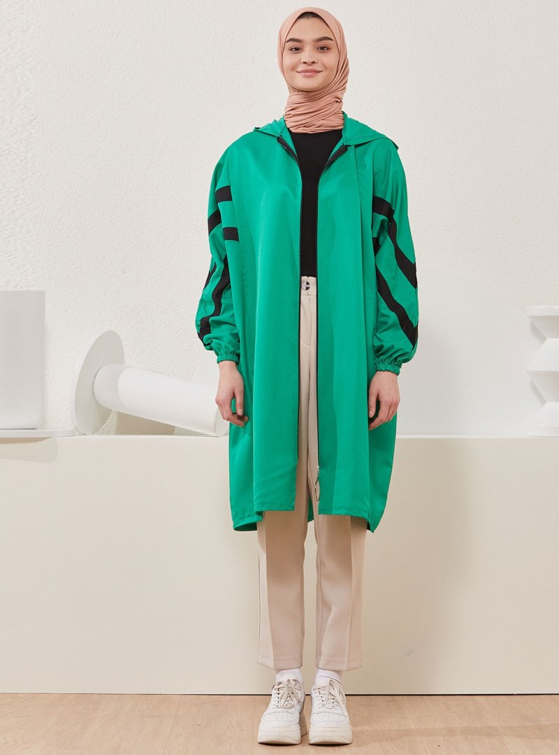 Tofisa Yeşil Kapüşonlu Fermuarlı Kap