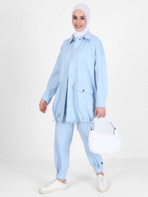 Benin Double Kumaş Cep Detaylı Kap Sky Blue