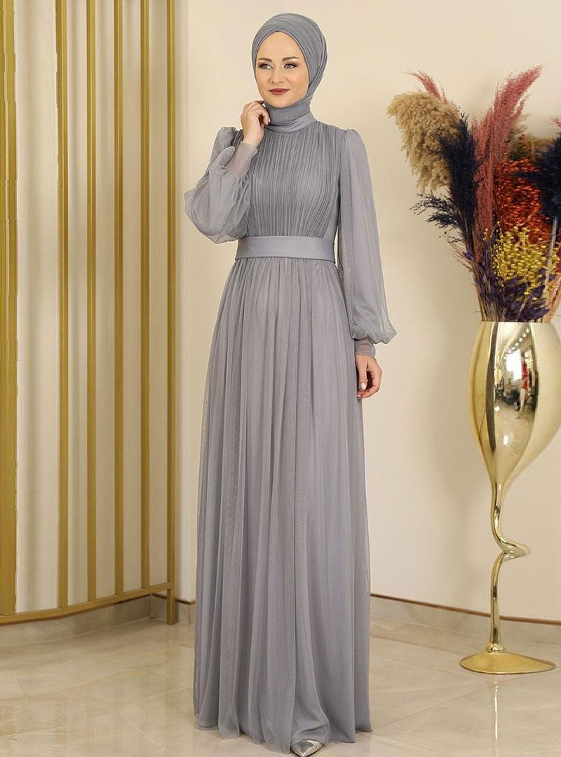 Fashion Showcase Design Gri Sükse Abiye Elbise