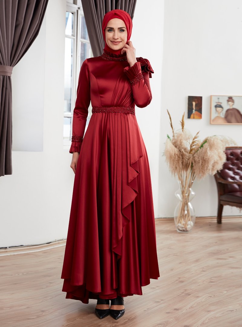 Moda Sinanlar Bordo Ceylin Abiye Elbise