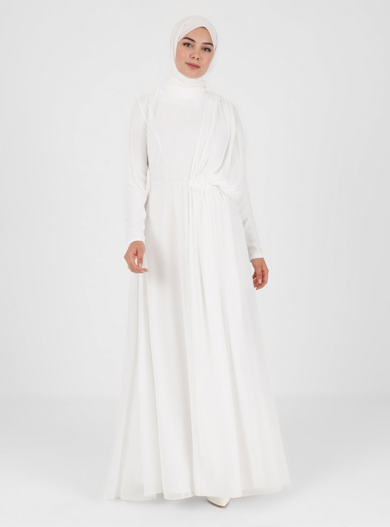 Tavin Beyaz Dantel Detaylı Abiye Elbise