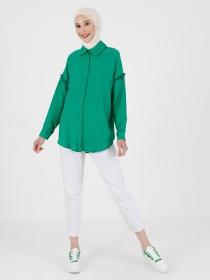 Benin Çimen Yeşili Püskül Detaylı Viskon Tunik