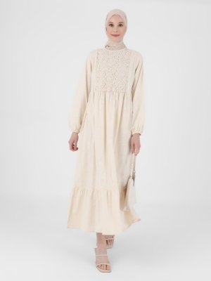 Refka Vanilya Güpürlü Pamuk Kumaş Elbise