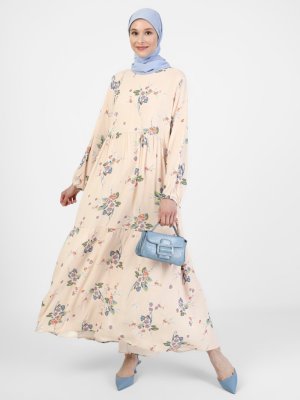 Refka Pudra Doğal Kumaşlı Çiçek Desenli Elbise