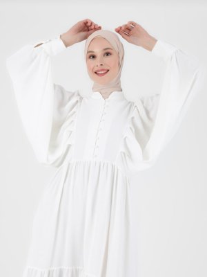 Refka Off White Brit Detaylı Yarasa Kol Aerobin Elbise